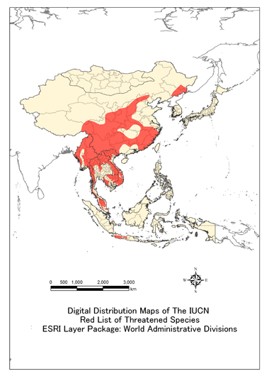 | Thailand | VU | Thailand Red Data: Mammals, Reptiles and Amphibians(Nabhitabhata and Chan-ard, 2005) |