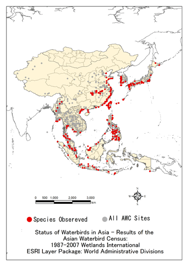 Reference: Li, Z.W.D., Bloem, A., Delany S., Martakis G. and Quintero J. O. 2009. Status of Waterbirds in Asia - Results of the Asian Waterbird Census: 1987-2007. Wetlands International, Kuala Lumpur, Malaysia