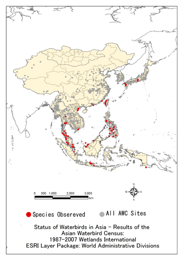 Reference: Li, Z.W.D., Bloem, A., Delany S., Martakis G. and Quintero J. O. 2009. Status of Waterbirds in Asia - Results of the Asian Waterbird Census: 1987-2007. Wetlands International, Kuala Lumpur, Malaysia